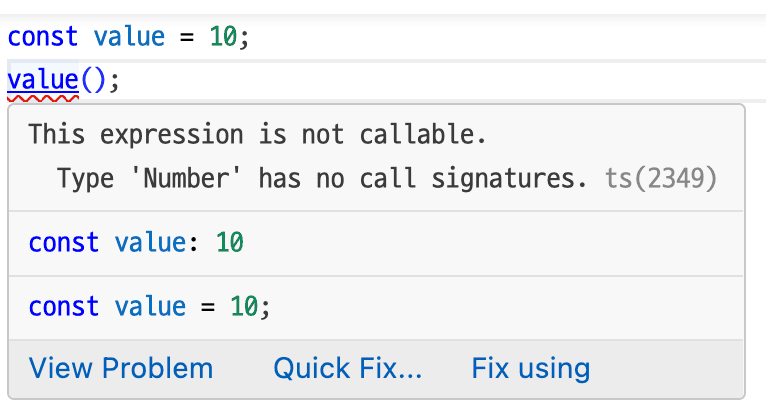 value 는 Number 타입이고, 이 타입은 호출할 수 없는 타입입니다.